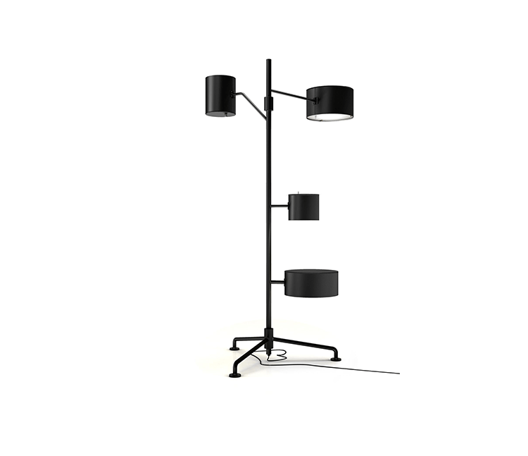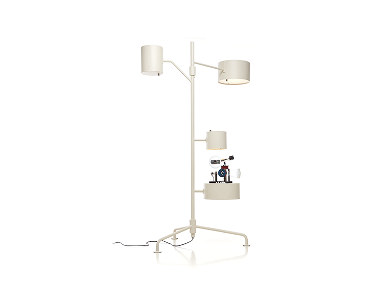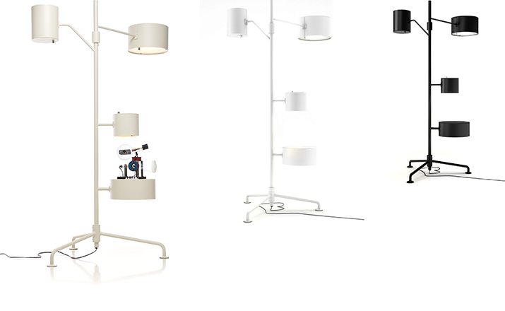 The Statistocrat Floor Lamp from designer Atelier Van Lieshout caught our eye because like most of the Moooi products it has an "I need that"look which in this case is nicely simplistic and understated. Every part is necessary and not in danger of getting dated or going out of style. So here is what you get. A torchiere top light that shines upward to illuminate nicely diffused light, two side lamps that are perfect reading and finally a nice little side table perfect for a tablet or your favorite beverage. The Statistocrat Floor Lamp is approximately 2 Meters High and uses 3 LED lamps using a total of 40 watts and is available in a wide assortment of colors over an all-aluminum construction. See the entire collection here.