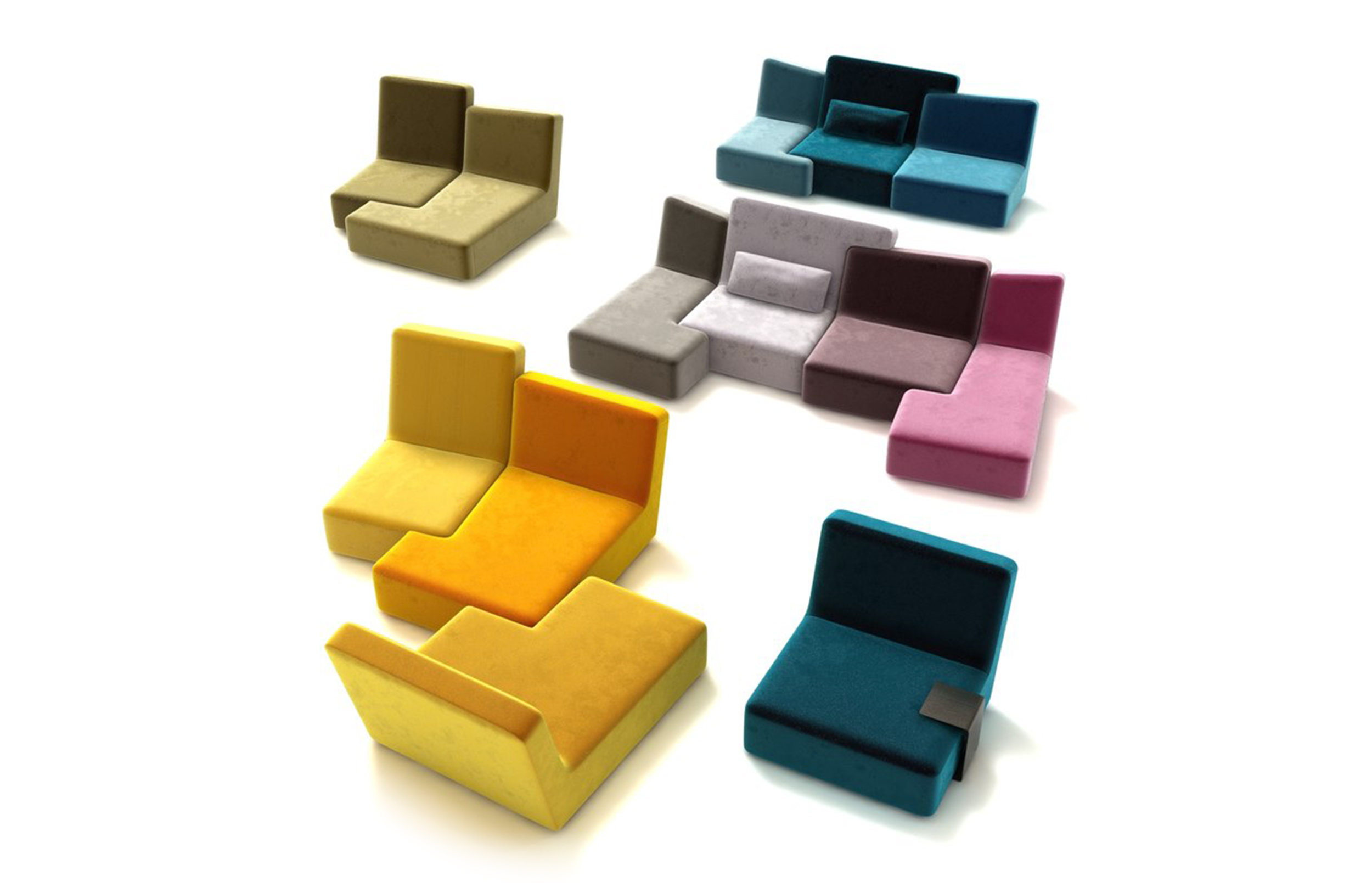 法国写意空间公司(Ligne Roset)在今年的科隆国际家具展上展出了这一款Confluence模块沙发,并获得了最佳设计奖(Best of Best)、最佳项目奖(Best Item)及最佳系列奖(Best System)三个奖项。Confluence模块沙发由法国设计师Philippe Nigro设计,这款沙发非常规的外型构造突显了设计师非凡的想象力和创造力,其相互交汇的构造看上去就像拼图一样充满趣味,而这种造型无疑也会给其陈设空间带来一种新鲜感。Confluence模块沙发可让使用者随其心意而将不同颜色、不同形状的模块搭配成各种组合,这也使其为体型不同,审美有异的各类人群都提供了个性化的就坐方式。设计师的创作灵感来自于现代美术作品中重叠的图形和笔直的线条,而略去了传统家具设计经常遵循的对称原则。Confluence模块沙发由多层木板和焊接钢片作为框架,内部由各种密度的聚醚泡沫材料填充,其表面面料为聚酯纤维织物,沙发脚由黑色聚丙烯制成。Confluence模块沙发各部分间相互重叠与镶嵌的方式令人眼前一亮,实用而有趣,满足了外型的美观而又充分体现了强大的功能,这应该是每件家具都追求的目标吧。