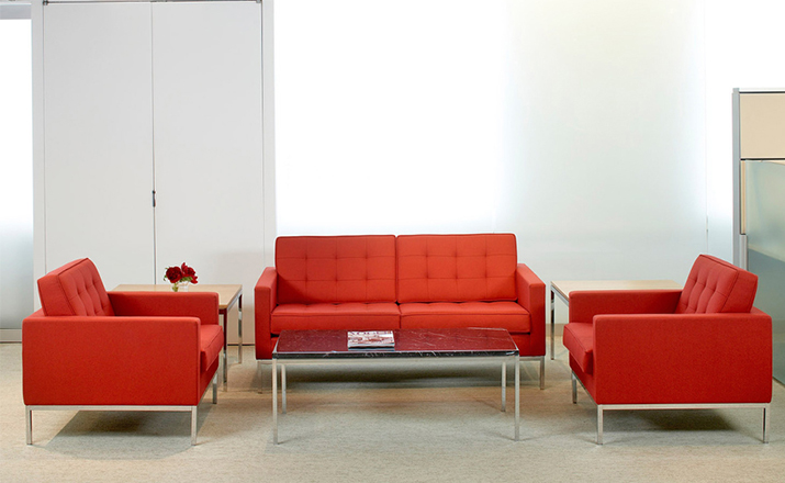 The Florence Knoll Sofa is a classic furniture design that rooted in England in the 17th century.This form of soft furniture design features side arms and considerable depth of seating.Comfortable cushions in Italian leather.Bright stainless steel legs.Leather cover range depends on the require.