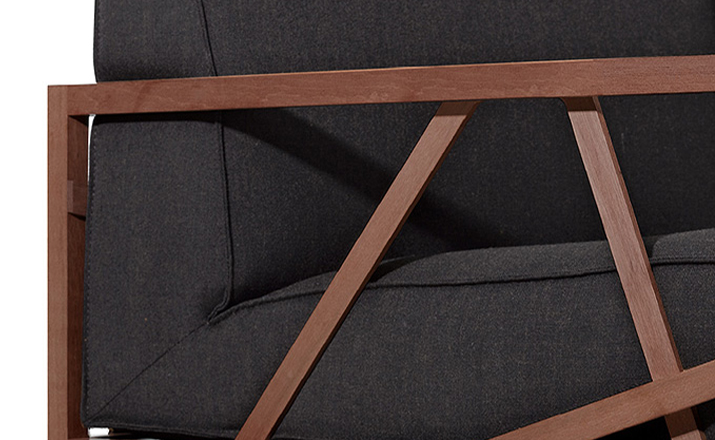 瑞士设计师Atelier Oï为Röthlisberger设计的一款沙发系列名为“Allumette(火柴)”,有单座、双座和三座。ALLUMETTE 沙发的醒目外观是归因于其来自阿鲁拉豆木树的硬木雕刻镂空框架设计。在这里,压力和反压力接受负荷的相互作用。优雅和独创性与稳定性相结合。其金属般基调的非漆木材经过打磨、抛光处理,允许其感性的存在,以充分发展。坐垫及靠垫内部填充高密度海绵、表面扪进口羊绒布或麻布或PU或真皮,提供高度的舒适感。