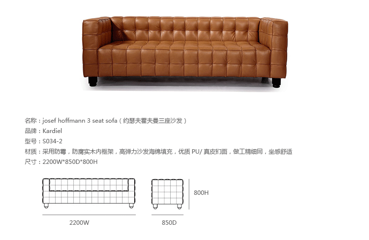This high quality reproduction of the Josef Hoffmann Kubus Sofa features a handcrafted hardwood frame graciously lined with polyurethane foam.The surface is luxuriously soft to the touch, compliments of its premium 100%Top-Grain Aniline leather upholstery. This premium reproduction is generously proportioned to original full-scale size and cube count.Precision stitched & aniline leather piped tactile cubes create a thick body of cushioning that is so comfortable you’ll understand why this sofa has been a modern classic for nearly a century.For those looking for historic significance in midcentury modern furnishings,the Hoffman Kubus is a certain candidate.