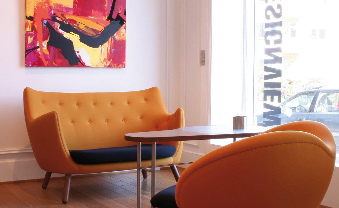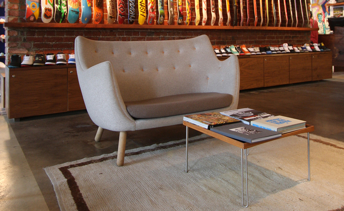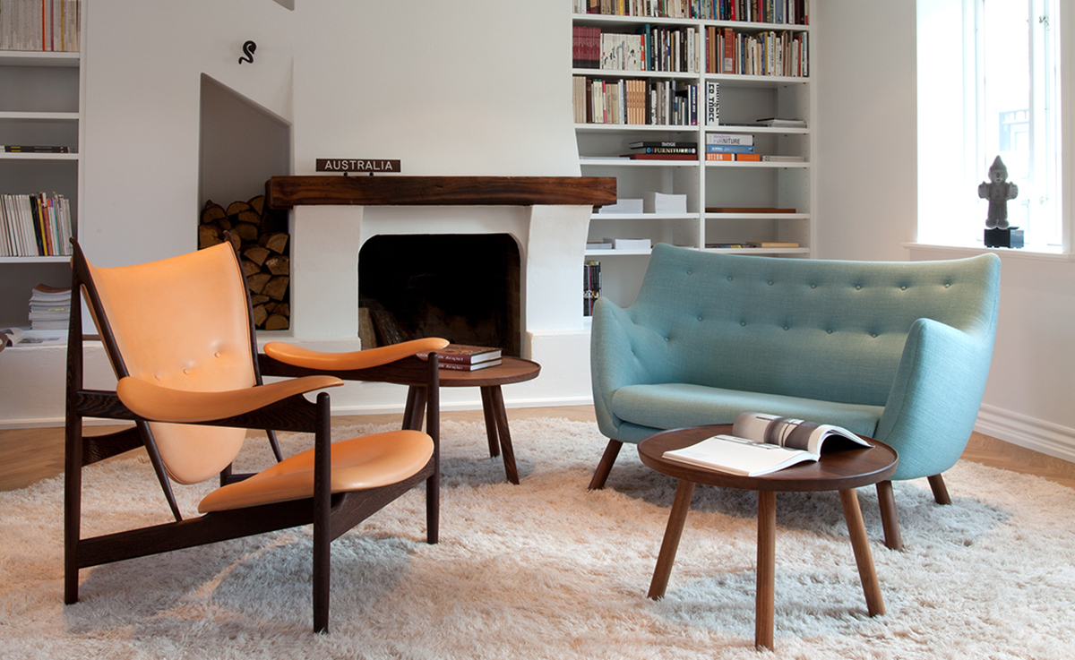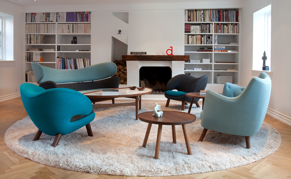 诗人沙发(1941)设计于位于夏洛滕隆哥本哈根北部的农村地区。设计师Finn juhl作为一个真正的享乐主义者,诗人沙发本来是他自用的。他设计的家具非常舒适,使用的工艺传统并且显示材料的价值。