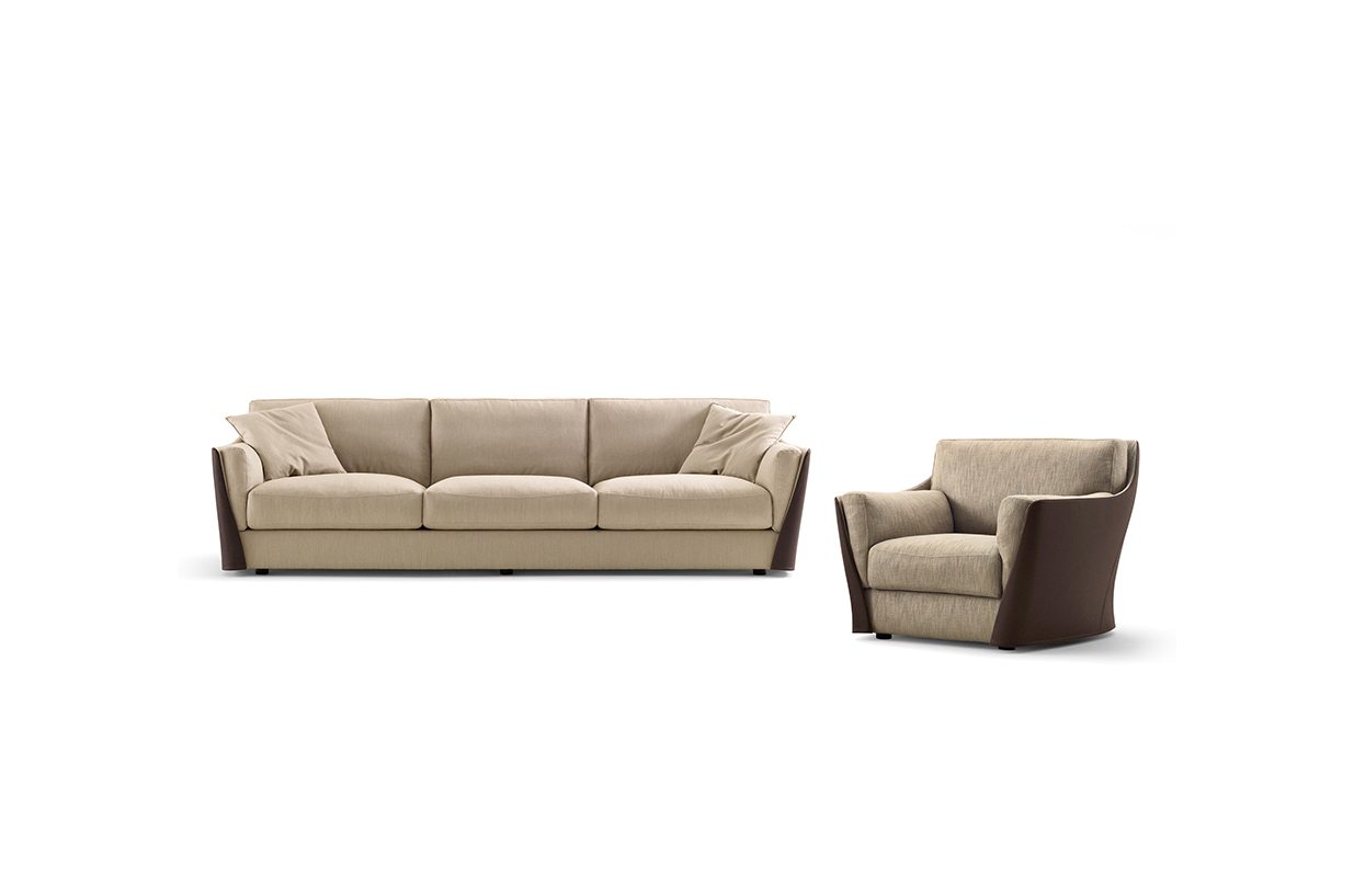 扶手椅和沙发的结构型钢的靠背,座位上的一个杨树胶合板和coldfoamed填充聚氨酯纤维覆盖。 靠背和坐垫上的鹅羽毛,最后在扩大聚氨酯的插入。 家具,完全可移动的织物或皮革,可以是一种颜色或两种颜色在皮革和内部外部织物或皮革。 一个在鹅的羽毛垫扶手椅和两个沙发的推荐。