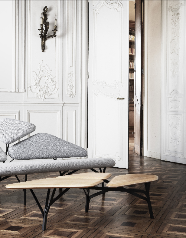 “波”是一个光沙发受到石头松树波勒兹别墅的罗马。 金属结构再现了分支网络和支持缓冲,合奏创造一个舒适的景观。