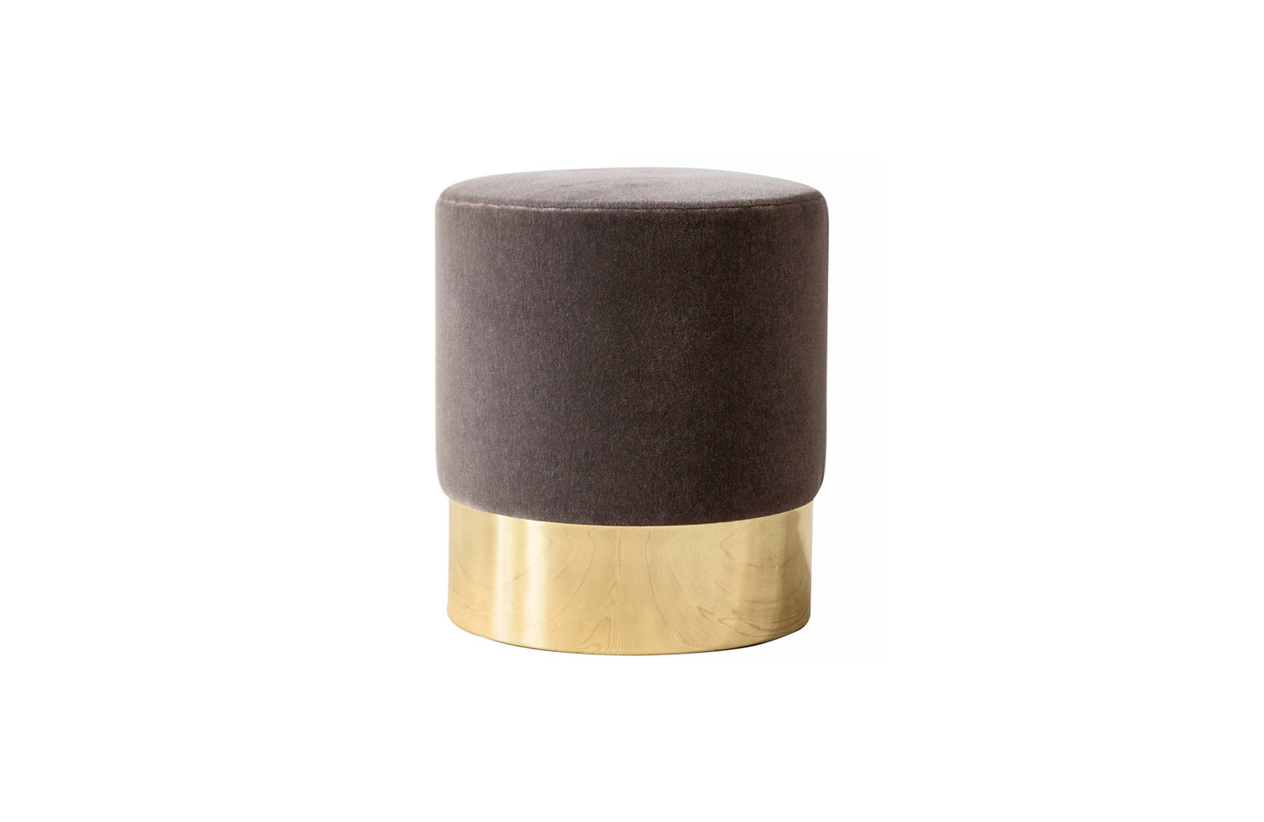 Azucena的凳子在Raf Simons Kvadrat纺织品上装饰。黄铜底座。1963年由Luigi Dominioni设计。Azucena的当代作品。
