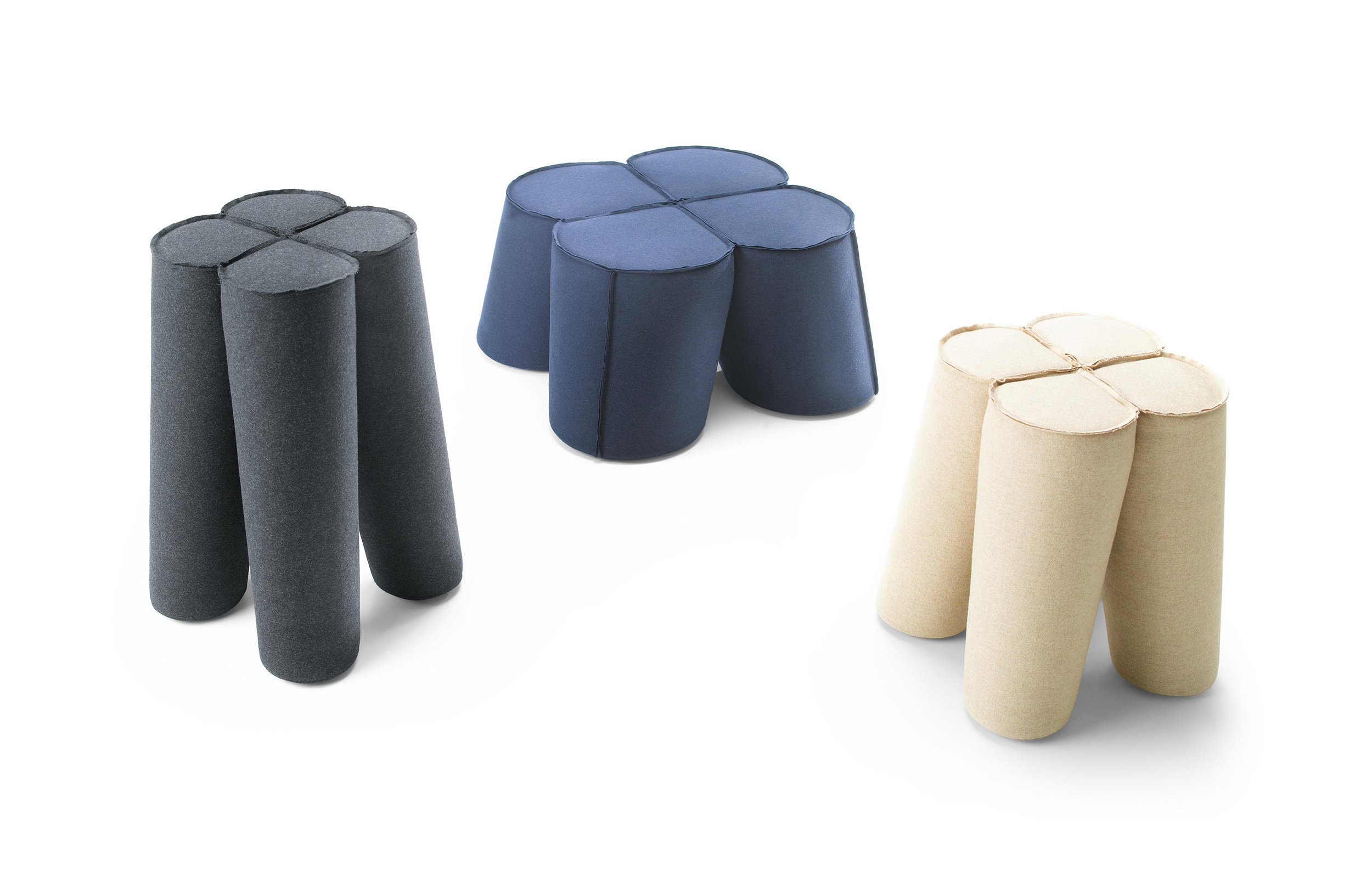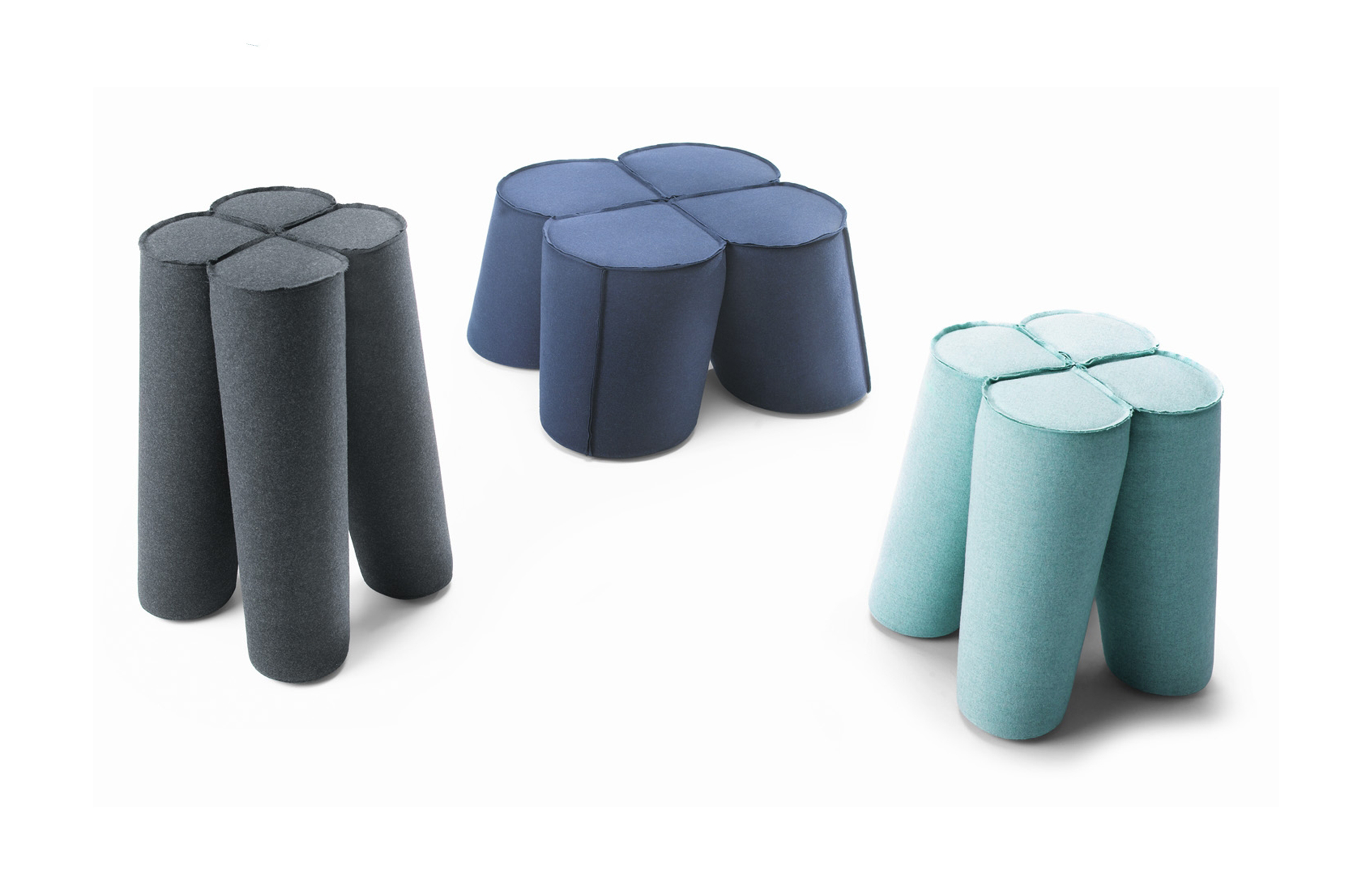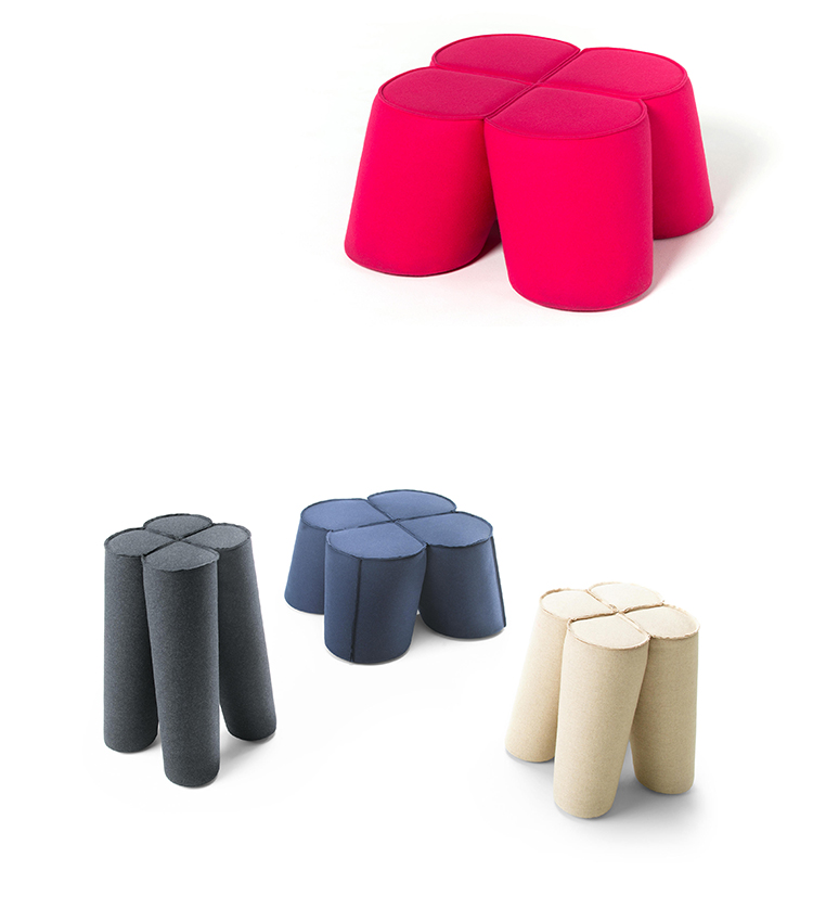 三叶草是对受欢迎的凳子的独特诠释。它的特点和奇特的形状让人想起四叶苜蓿……给人带来好运。该系列包括三种不同尺寸的座椅:袋、凳和杆凳。此外,当你在上面放一个单独的桌面时,凳子可以用作桌子。有不同的缝制成品可供选择:标准缝、右缝和右缝,外加任何颜色的附加镶嵌。