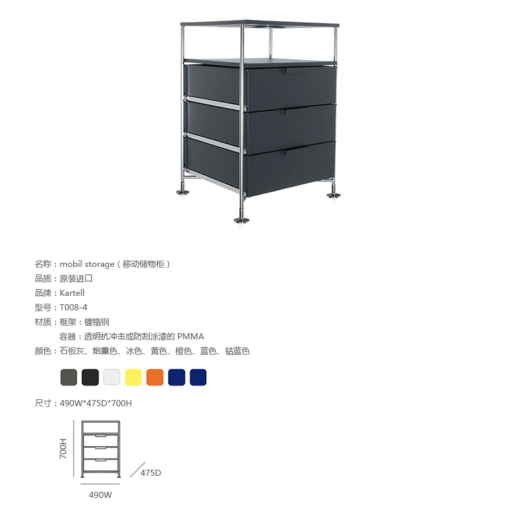 Mobil storage(移动储物柜)是由意大利国宝级设计师Antonio Citterio(安东尼·奇特里奥)设计的,他的设计跨越三大洲,已成为设计领域最活跃的渊博人士,1972年,他与著名品牌Arclinea厨具、flexform、Flos灯具等合作,1987年,为B&B设计的座椅获金罗盘奖.Mobil取自移动机制知名,带有随处收纳、移动变幻的多元满足,以多层抽屉式的收纳,搭配置物层版,不论是作为床边柜、工作室文件抽屉、生活收纳等,都非常合适。此外,另可选择滑轮式样、或是固定式座脚,自在搭配。