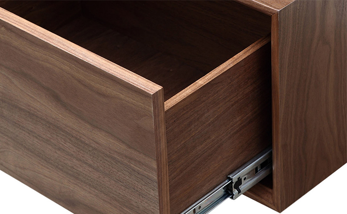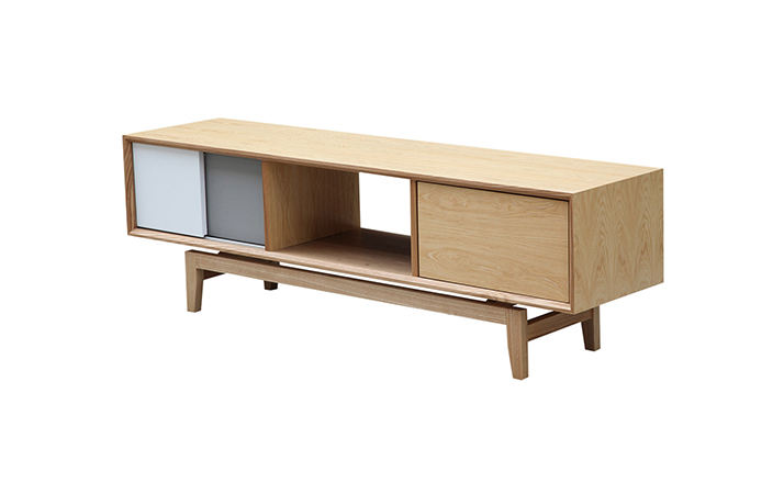platform media cabinet(平台媒体橱柜)有着迷人的中世纪设计风格和当代形式巧妙融合,媒体橱柜主体平台由三组抽屉组成,中间的抽屉是敞开的,两侧的是滑动伸拉抽屉。在20世纪50年代末,60年代初, Finn Juhl和 Arne Vodder 最先尝试胶木和天然木的组合运用,并流行至今。这是大胆的创新,他们结合传统的新鲜的新兴技术与现代主义的概念。他们通过这些色彩绚烂的产品所实现的是令人印象深刻的比例的平衡。制作采用精选MDF板基材胡桃木或水曲柳木皮贴面、实木脚架、环保油漆喷涂,做工精湛,品质一流。
