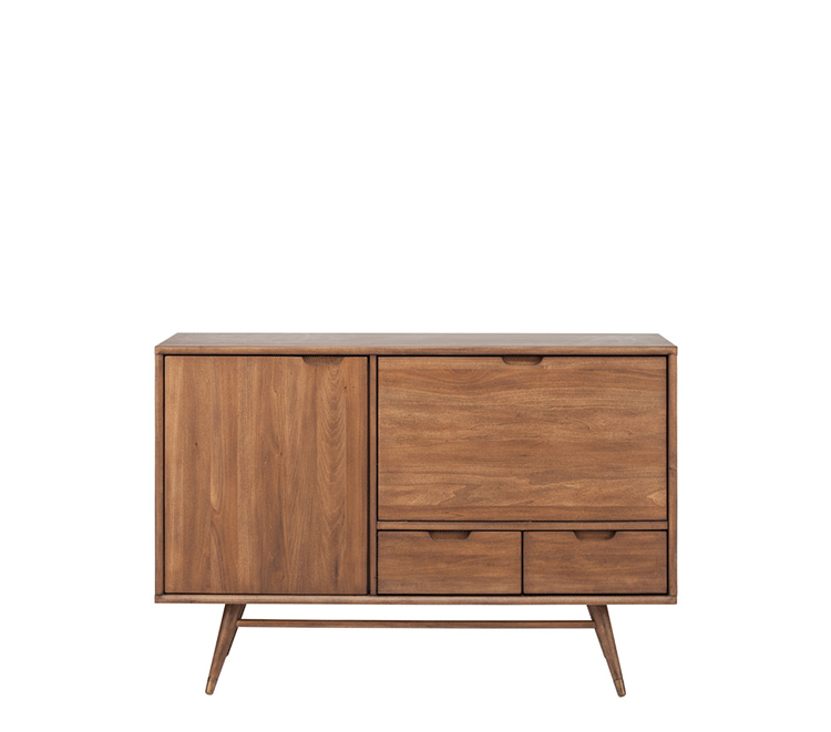 janek sideboard(janek餐具柜)是非常受欢迎的现代斯堪的纳维亚设计,是Kardiel公司制作的经典实木家具,左门具有内部可调式搁板。Finn Juhl和 Arne Vodder 最先尝试胶木和天然木的组合运用。这是大胆的创新,他们结合传统的新鲜的新兴技术与现代主义的概念。制作采用精选MDF板基材胡桃木或水曲柳木皮贴面、胡桃实木或水曲柳实木脚架、环保净味油漆喷涂,做工精湛。