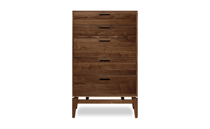 copeland soho 5 drawer dresser(科普兰soho 5抽梳妆台)是Copeland Furniture公司copeland实木系列之一。我们塑造环境,然后环境塑造我们,copeland旨在传递的舒适度和清晰度的感情。设计借用了一些最优秀的传统和当代的设计要素,非常具有特色。这个中世纪现代风格的设计,提供了5层平滑抽屉存储空间,可以使您更好的归纳自己的物品,提供大量存储空间。制作采用精选MDF板基材、进口美洲胡桃木,贴面、实木脚架、彩色装饰边、环保净味油漆喷涂、做工精湛。