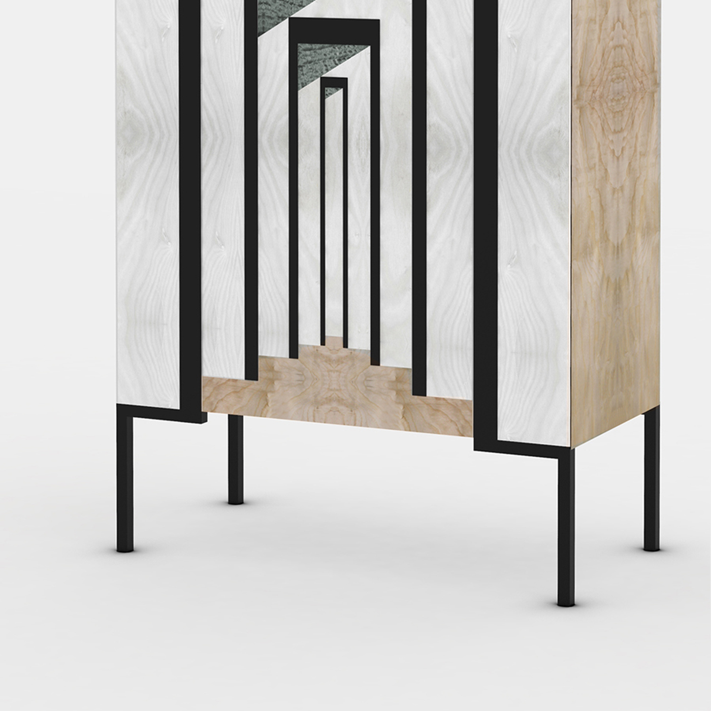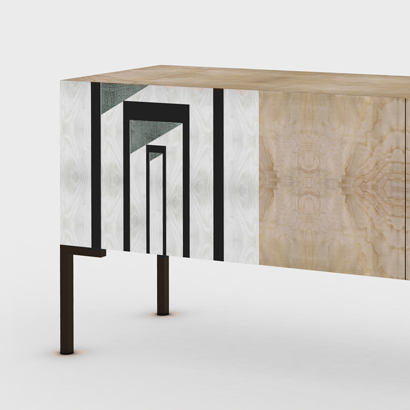 这个精巧三门餐具柜与橄榄灰木完成,支持与铁腿。 部分的前面板是装饰用乌木和增白灰木繁殖一系列开槽空间使用的传统技术错错。 这种引人注目的装饰了,让这段复杂的古玩。