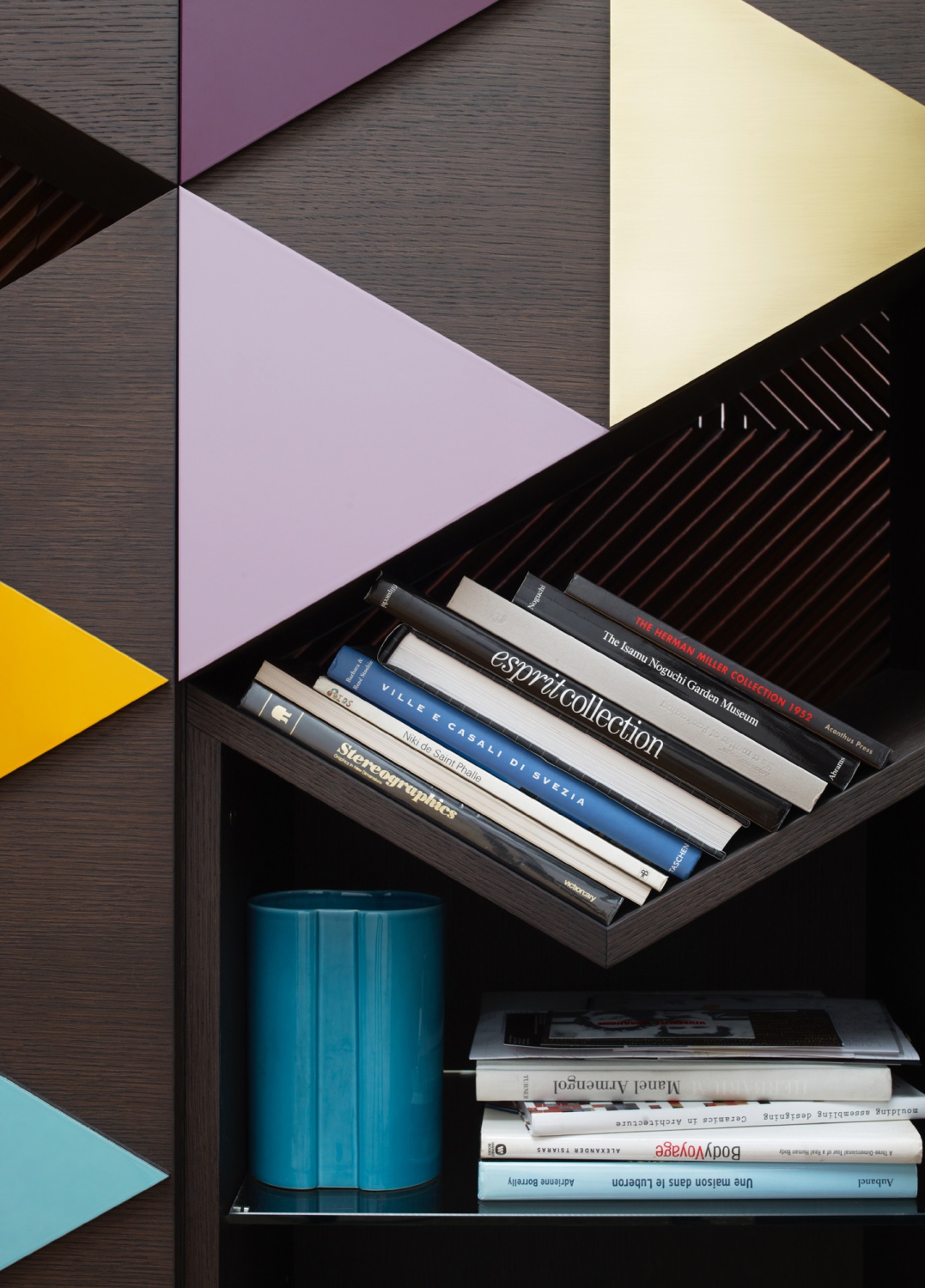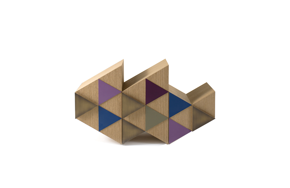 橱柜与雕塑不寻常的形状,配有门、装饰的三角形,塑造遵循几何方面的设计。