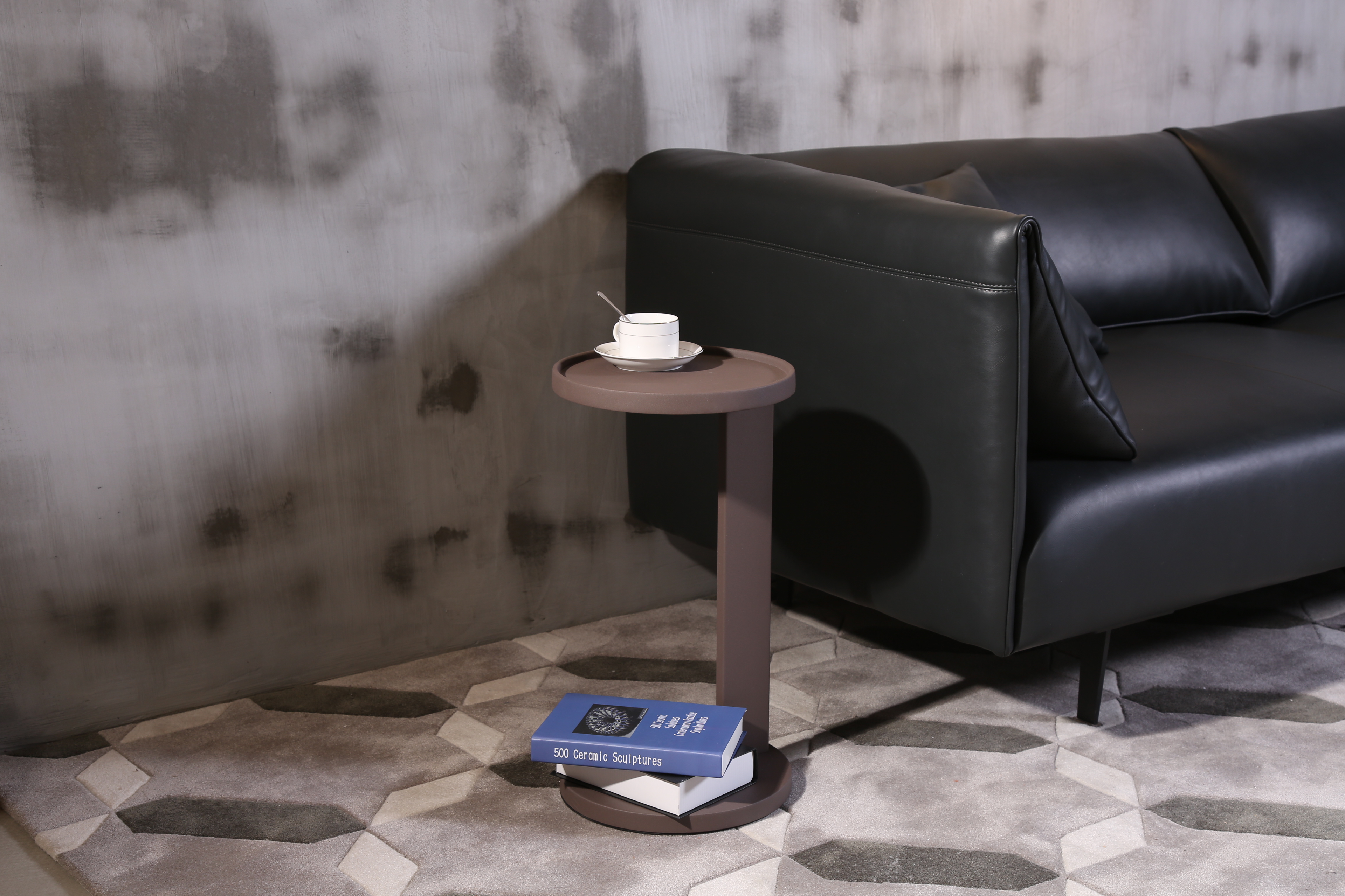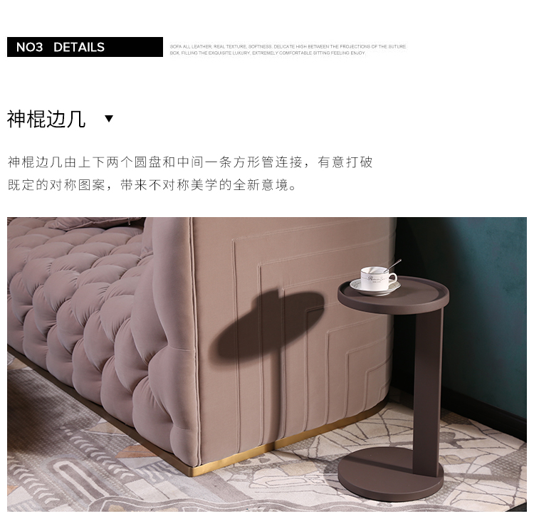 神棍边几由上下两个圆盘和中间一条方形管连接,这款北欧风格的边几有意打破既定的对称图案,带来不对称美学的全新意境。