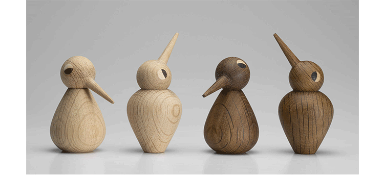 他于1959年所设计的简洁有机线条木鸟家族系列︰有三代同堂的鸟爸、鸟妈、鸟阿公、鸟阿嬷、还有鸟宝贝,虽然当年只有鸟宝贝问世,却已经在50年代的丹麦掀起一股木工艺术品的热潮,并引起世界各地设计界与媒体的青睐报导,成为当时收藏家的最爱。 如今,Architecmade公司让整个鸟家族大团圆,重新问世登场,你我怎能再错过这次收藏的机会。