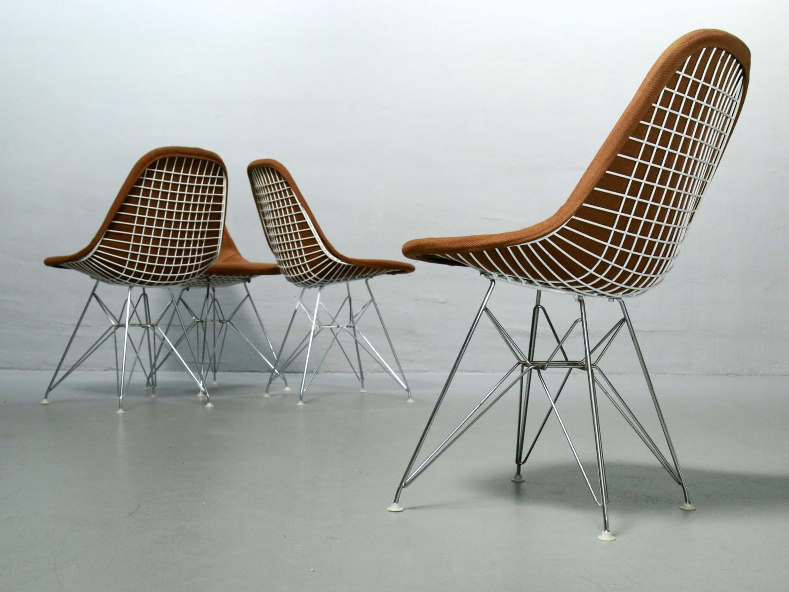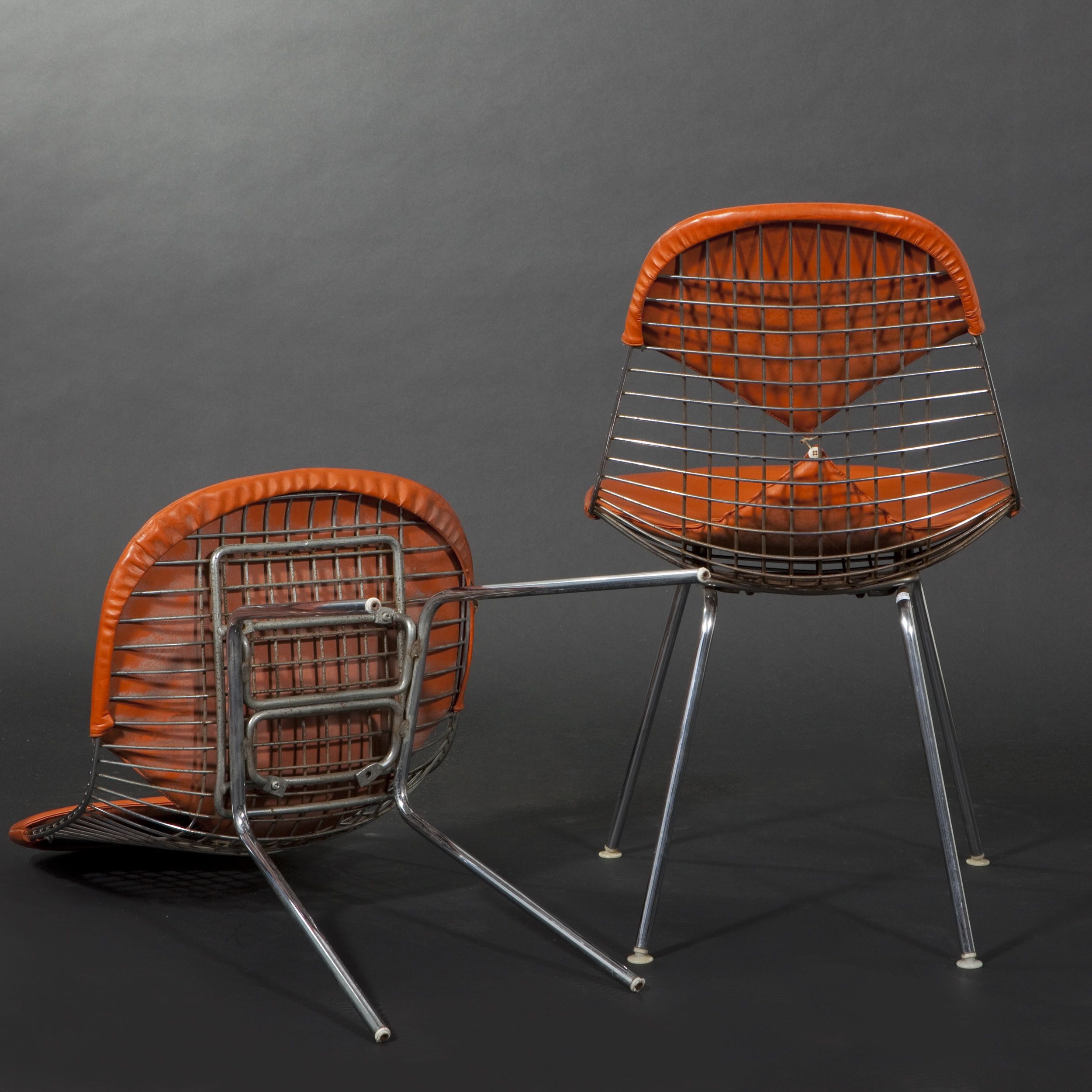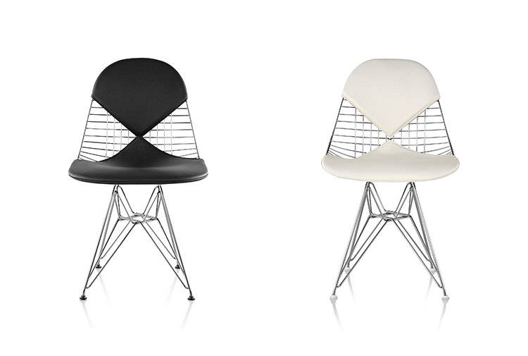 Charles & Ray Eames 1951 年發表的 Wire Chair 系列,以一片式有機網狀椅座,延伸變化出一系列不同椅腳及座墊搭配的單椅,這系列椅款輕巧透明的設計,在 60 年代可說是運用了當時最先進的技術來製作,靈感則是來自於鏤空的金屬收納籃,金屬條交織的椅座,彎曲的弧面不僅符合人體工學,在視覺上更具有穿透性。