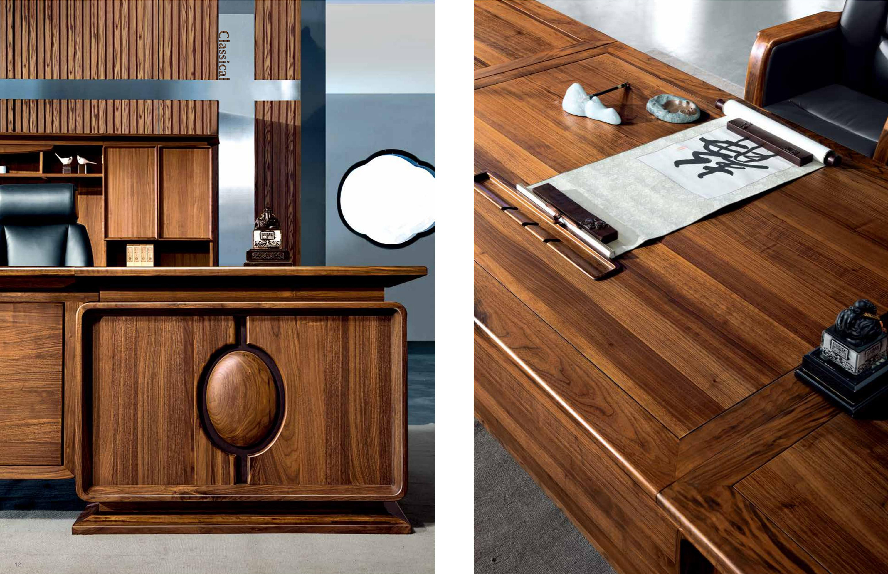 汲取东方文化的深厚底蕴“又融入国际化的简约大气格调,以进口黑胡桃的唯美纹理及卓越质感 深度演绎高级办公家具的独特神韵“冠御一宝石一大班台 融科学的功能设置与境界·形象表征于一体 让最顶级的办公空间雍华尽显“彰显巅峰。 【匠心御木,文化入魂】 艺之道 贵在精贵在纯“但 在这讲求效率“追求速度的工业时代“仿佛整个世界都变得浮躁“而冠御的品牌理念刚好与之相反“我们的工匠大师坚持每一个细节“每一道工艺“都要绝对的专注 用自己的心去感受 用自己的手去苛刻所有的细腻和点滴“在冠御看来“作品就是人品这个时代最需要的 就是这种能够沉住性子“认真做好每一件作品的工匠精神。 【冠御四海,达雅天下】 不甘平凡“向着心中的方向勇敢前行“山重水复却愈见光明 触及巅峰又渴望更高的远峰 此为成功者之境界“亦为冠御办公家具品牌之道“冠御办公家具精选珍材“以名师匠作“缔造办公家具中的世界名作为不甘平凡者提供一方驰骋事业与艺术文化的灵性空间 运筹冠绝四海的雄心“统御旷达天下的才情 在不动声色间品位自显“触目可及处气象万干。 【神韵东方,国际奢华】 东方“以一种神秘与羞涩的形象吸引世人向往“流行也因这种保守而沉潜千年“正因为如此“切因内敛而迷人。冠御办公家具“注重从东方文化中汲取灵感“江南雅居,小桥流水 唐宋诗篇......万般随手可得的东方造型元素与文化印象“在国际化轻奢艺术主义启迪“洗炼下“成为办公家具设计上的闪光点“或隐“或现·不论意象“形态,俯拾皆美。 【儒商达士,韬略文武】 位极人生巅峰 静享成功荣耀 曾经纵横四海的雄心“归结于九尺案前 纸笔 冠达天下的时世大志化作豪椅上傲然一笑“非凡与平凡的和谐“事业与内心的平稳“让巅峰人生更显从容笃实“在偶尔独处的一刻 回归自然的纯净望窗外弯月下涌起江山如画的豪迈“斗室外的心事战场上的风起云涌 谈笑间决胜千里......
