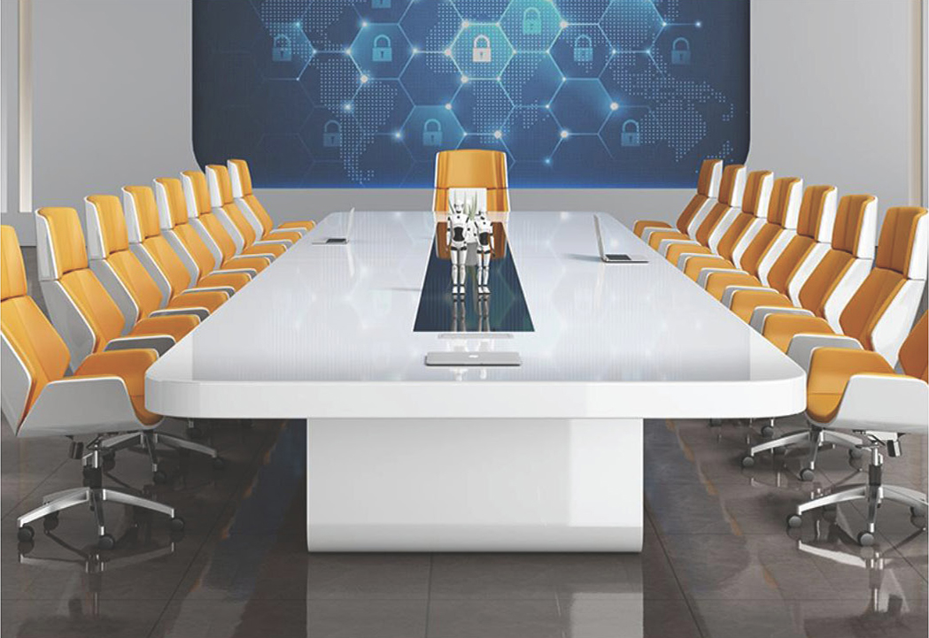 会议桌秉承系列特有的稳重和优雅,考虑到人性化的使用功能,提供了一个的小型收纳中心。不仅让整体感觉更加稳固,而且在结构上形成了强烈的对比,带来颇具视觉冲击力震撼效果。不同曲线与色彩的运用,塑造不同个性,亲和性设计风格,创适柔和,和谐的交流氛围,亦提供恬静,幽雅的休息环境。