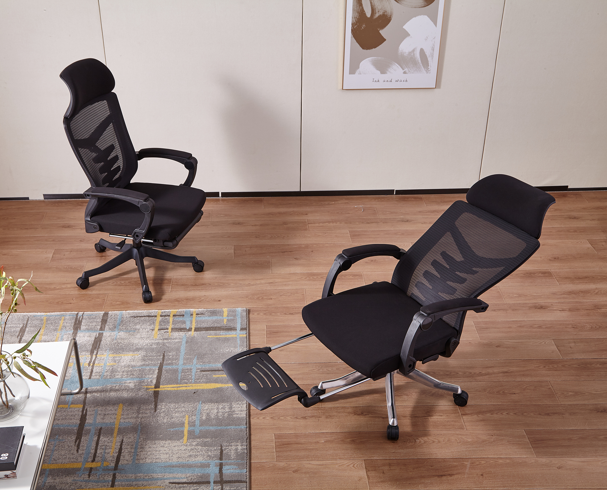 头枕:头枕靠背坐垫采用优质网布,升级大贴面软包头枕,柔软舒适 背框:黑色PA尼龙+玻璃纤维注塑配件,功能鱼骨腰枕,可前后调节灵动支撑,外拉式300N线控气动躺度功能,靠背可任意角度调节,最大可躺170° 坐垫:45#密度原生高弹力切割海绵坐垫,扪高弹力透气网布,安装隐藏式伸缩脚踏 扶手:自适应联动扶手,扶手面扪透气网布,手臂坐躺皆可支撑 气杆:优质黑色三级气压棒 椅脚:高强度345#尼龙脚,注塑一次成型五星脚 轮子:60黑色PU脚轮