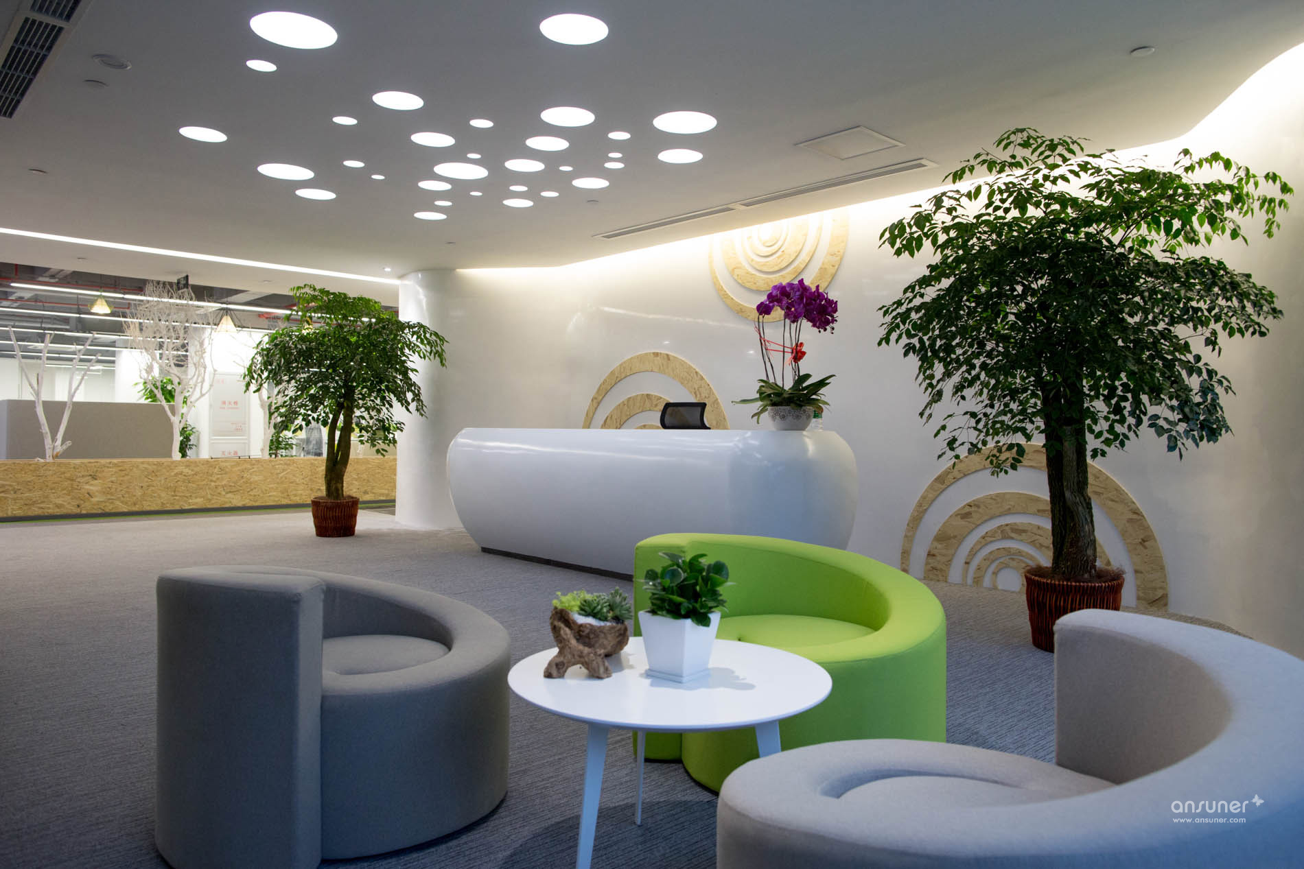 接待台后面的装饰墙上镶嵌着由小及大的圆环,彷如那神秘幽深的银河,是探索的方向。类比的“星空”、“银河”,在形式上做到了既不直白同时又能反映企业相应的特点,增强了对于BETWAY在线登录官网的体现。
