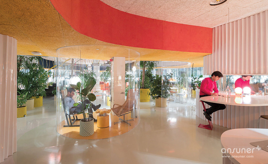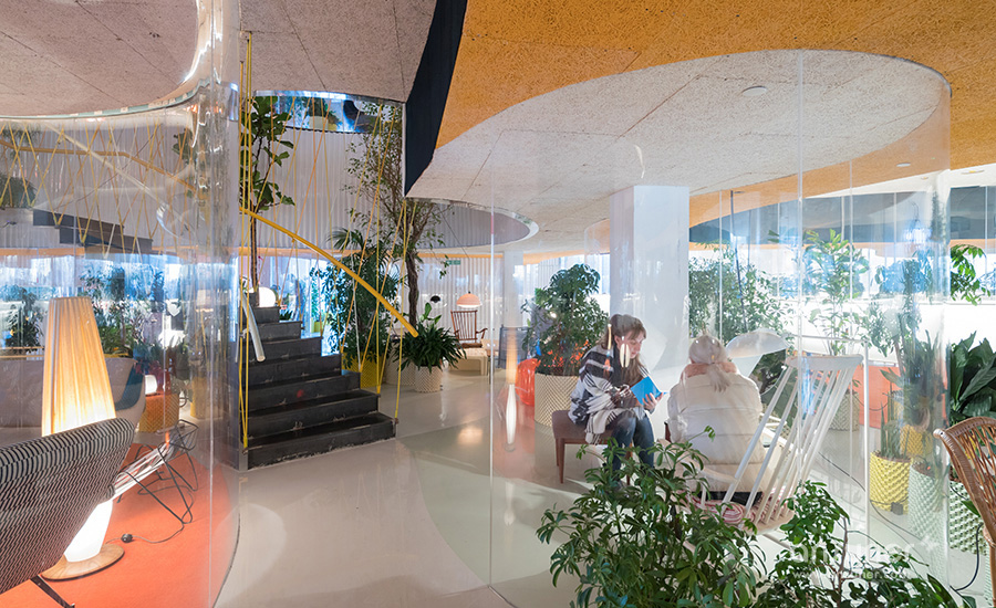 上图:联合办公的楼下就是食品交易市场second home里斯本联合办公空间,由西班牙著名的建筑工作室Selgas Cano设计。这里绿植环绕、五彩缤纷,开放的空间可容纳250人在此办公。共享工作空间的理念趋势在全球持续快速增长,second home亦希望借助这股风潮为他的会员打造一个可持续发展、不同行业与学科间的思维碰撞和交流的创业平台。
