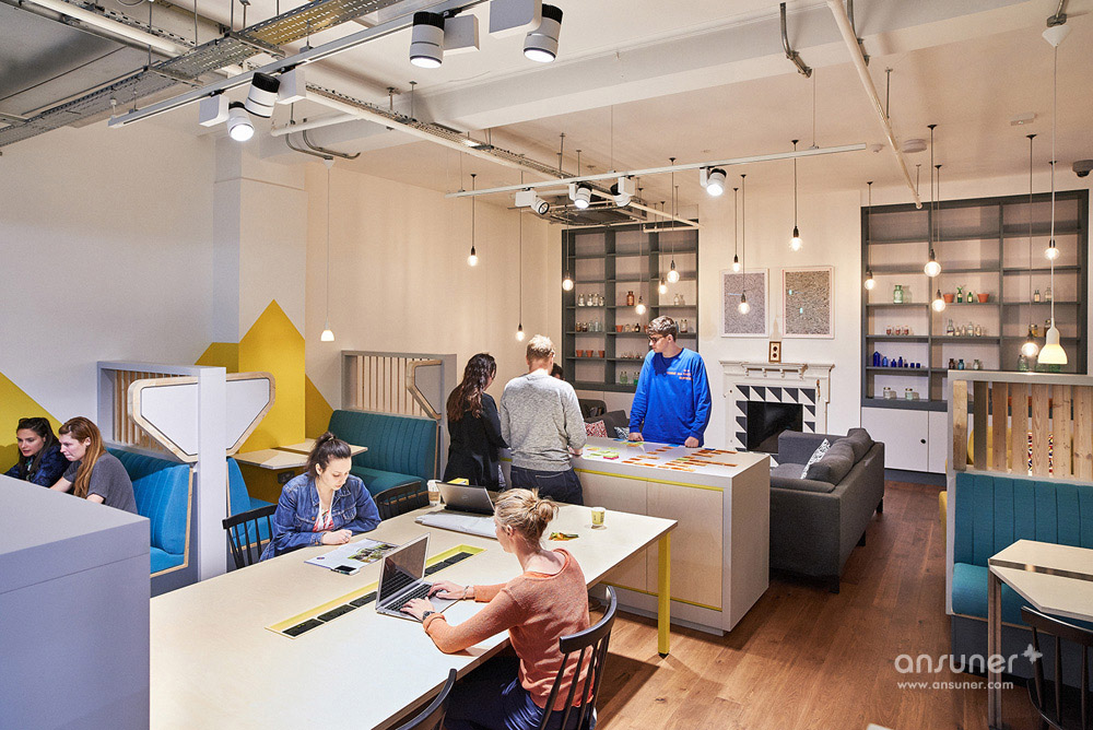 英国联合办公品牌Huckletree,旨在为志同道合且雄心勃勃的初创公司创建一个共享社区,在共同的目标下分享交流经验从而走向成功。其位于伦敦芬斯伯里广场Alphabeta大楼的办公空间由Studio RHE设计团队打造。Alphabeta大楼是一幢建造于1904年的历史建筑,经过StudioRHE的全力改造,这幢九层楼的历史建筑如今已成为伦敦新的创意空间聚集地,而其外表仍保持着岁月沉淀下的永恒魅力。时尚创意,正好契合Huckletree的品牌理念,因此选择这里开创新的联合办公场地。