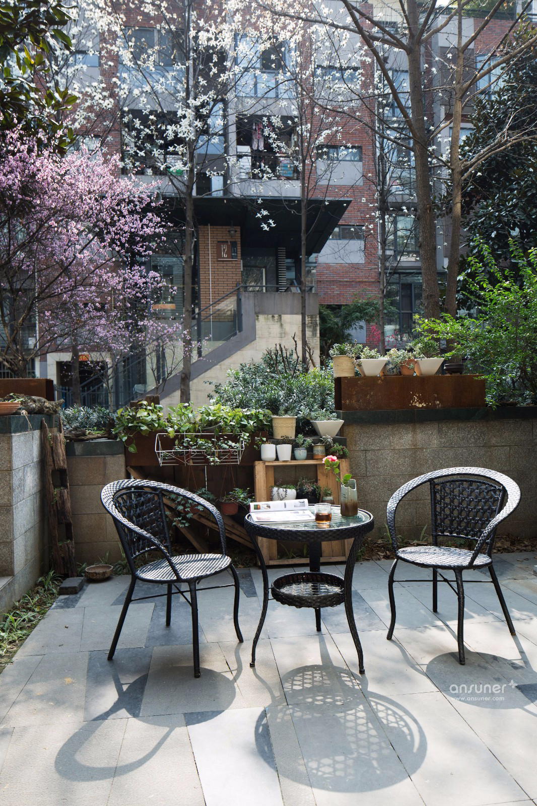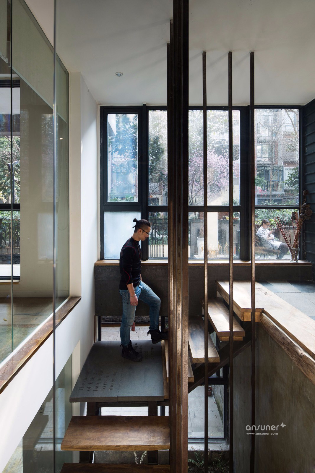 庭院里堆满的绿植,郁郁葱葱的树木,阳光和凉风,茶水和谈笑风生,有一瞬间你会迷失恍惚,不知身处办公室还是远野的屋落。这便是 TCD空间的理念:将空间做到极简,却将自然、人情与生活做到极致。我想这就是生活的美学也是设计的哲学。