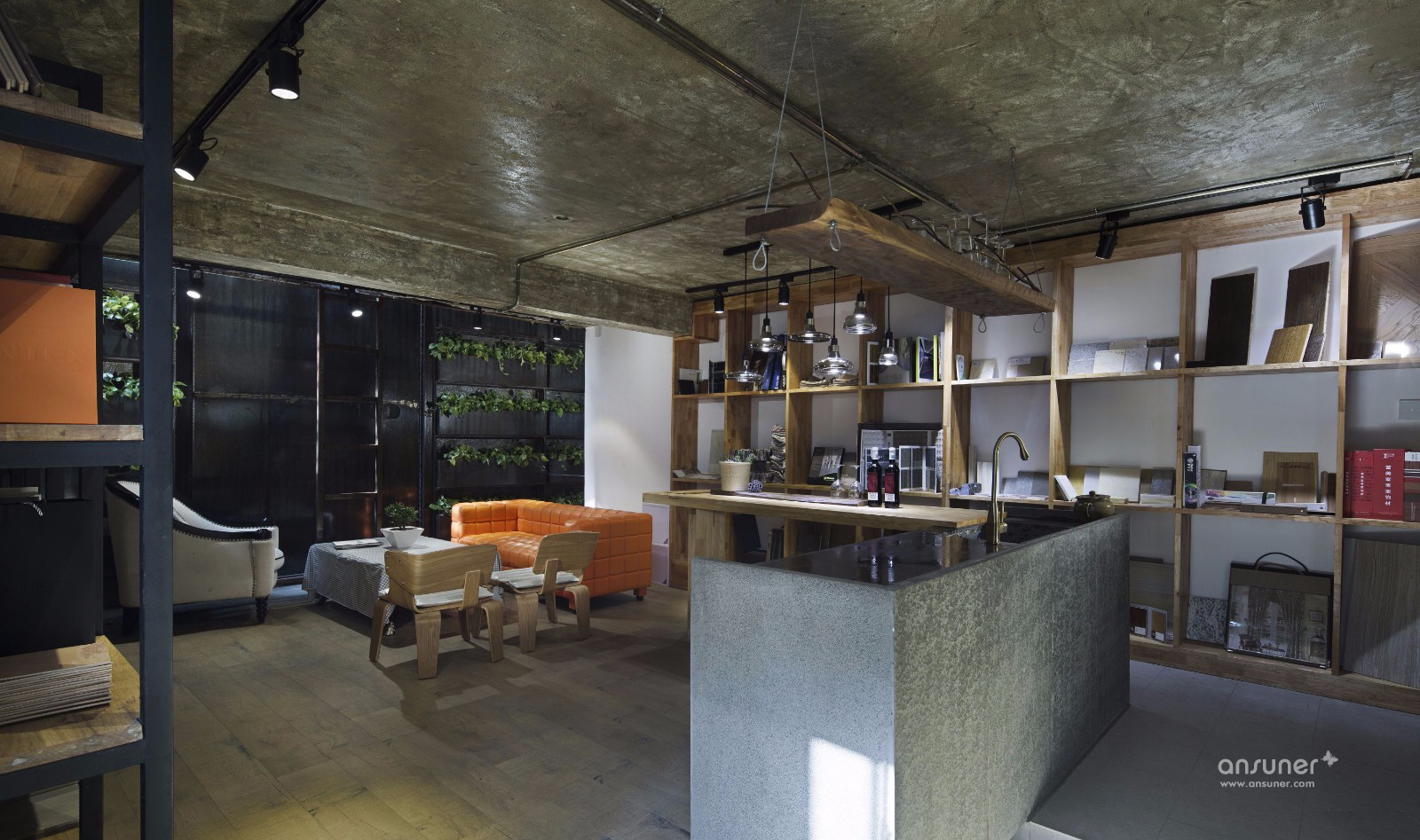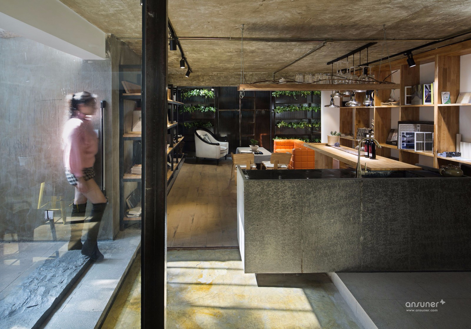 踏进TCD,马上就能感受到整个空间的情绪。冷静的混凝土元素,粗糙的柱壁,灰暗的水泥地面,使空间宽阔且同时具有整体性。